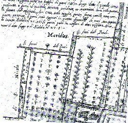 Nell’immagine i "pomi e noci" di una Possessione segnati con simboli diversi.