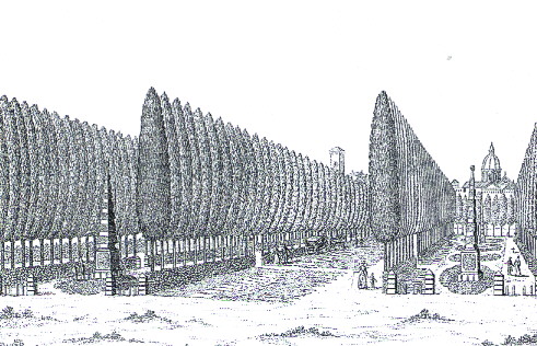 Lo stradone che da porta Castello conduce a Rivalta viene abbellito con 2000 pioppe e altre piante e stroppe fatte venire dal bosco di Luzzara. Seguono negli anni successivi raccomandazioni per la buona manutenzione "del buon passeggio introdottosi fuori Porta Castello". Lo stesso governatore richiama l'attenzione sullo stradone detto "il mercato" atto al passeggio ombroso perché si curi la manutenzione delle piante innaffiandole. "Sarebbe di gradimento della serenissima signora duchessa....." dice.